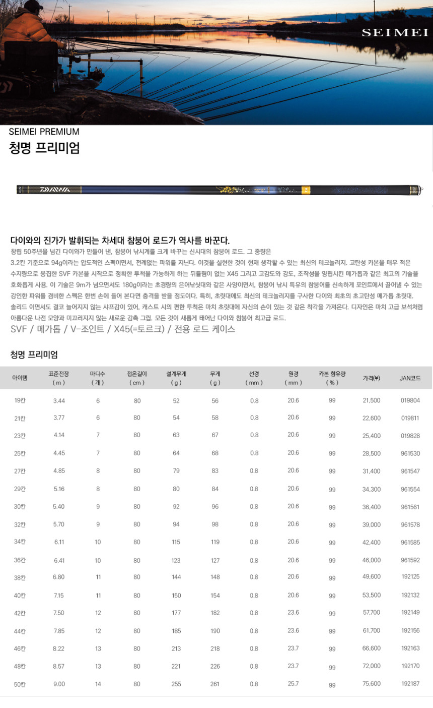 [한국다이와정품] 청명프리미엄 32칸 SEIMEI PREMIUM