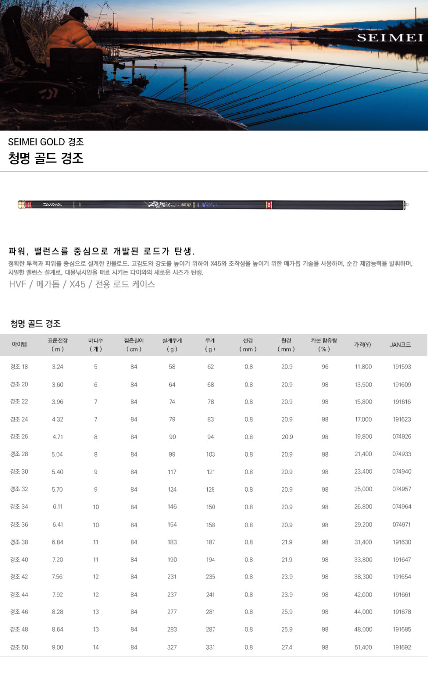 다이와 민물대 청명 골드경조38/46