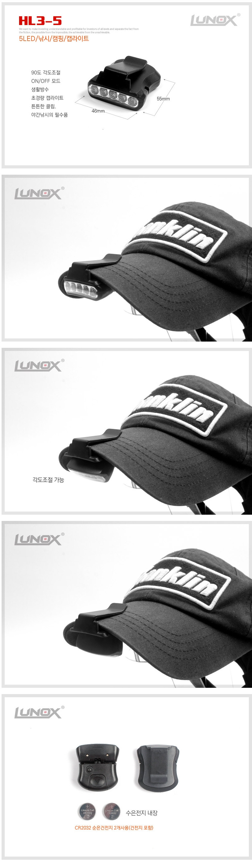 루녹스_4-3 캡5구 모자용 캡라이트 LR-A006 / 루녹스_4-3 캡5구 모자용 캡라이트 LR-A006