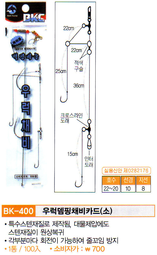 [백경조침] 백경_우럭 뎀핑채비 카드 소 BK-400 (100입)