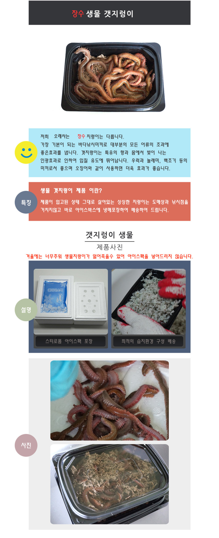 더 오래사는 장수 갯렁이 100g 1팩 생물 바다낚시에 필수 미끼 싱싱한 갯지렁이